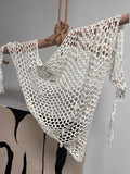 Boho Hand-Crocheted Cowrie Shell Triangle Scarf